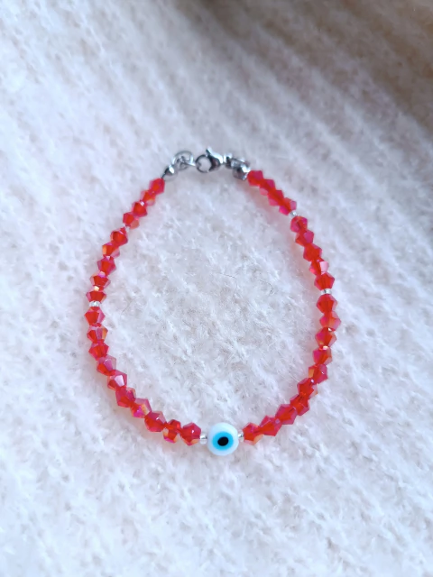 Cristal de roca rojo. Acero quirurgico y mostacillas