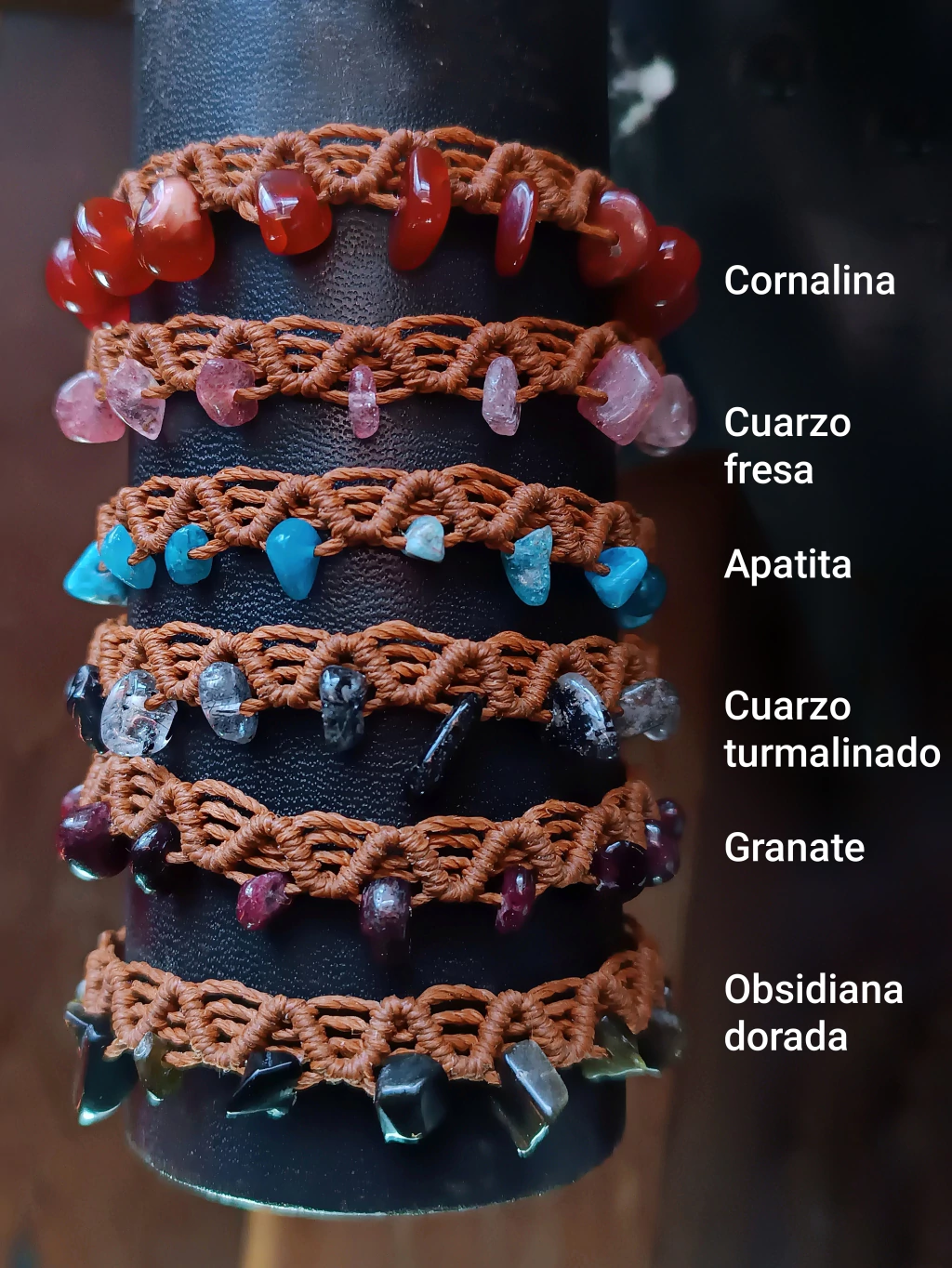 Cornalina Cuarzo fresa Apatita Cuarzo turmalinado Granate ruby Obsidiana dorada